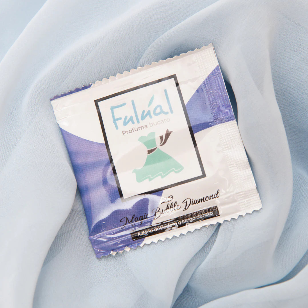 Fragranza fresca e frizzante, con note fruttate e leggermente dolci. Magic Bubble Diamond 23 dona al bucato un profumo vivace, elegante e persistente, perfetto per tutti i tessuti.