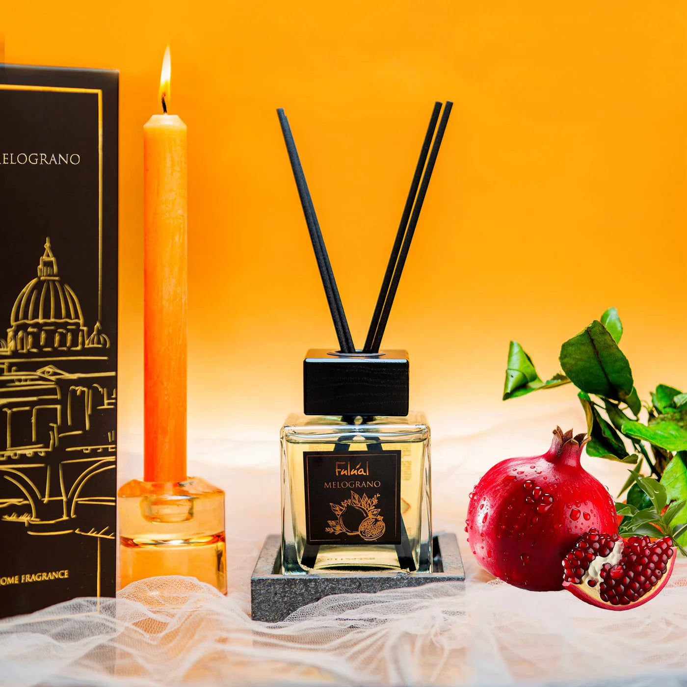 Il diffusore per ambienti a bastoncini Melograno è perfetto per chi ama i sentori dolci e vitaminici di questo frutto prezioso.