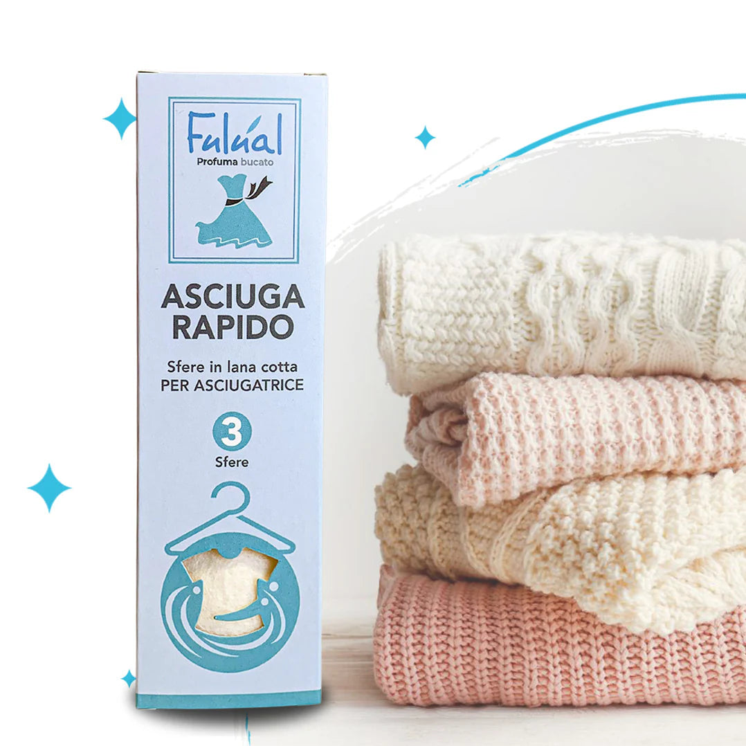 Le palline per asciugatrice in pura lana cotta sono un'alternativa naturale, ecologica e riutilizzabile ai tradizionali ammorbidenti chimici. Facilissime da usare, riducono i tempi di asciugatura fino al 25%, contribuendo a un notevole risparmio energetico.